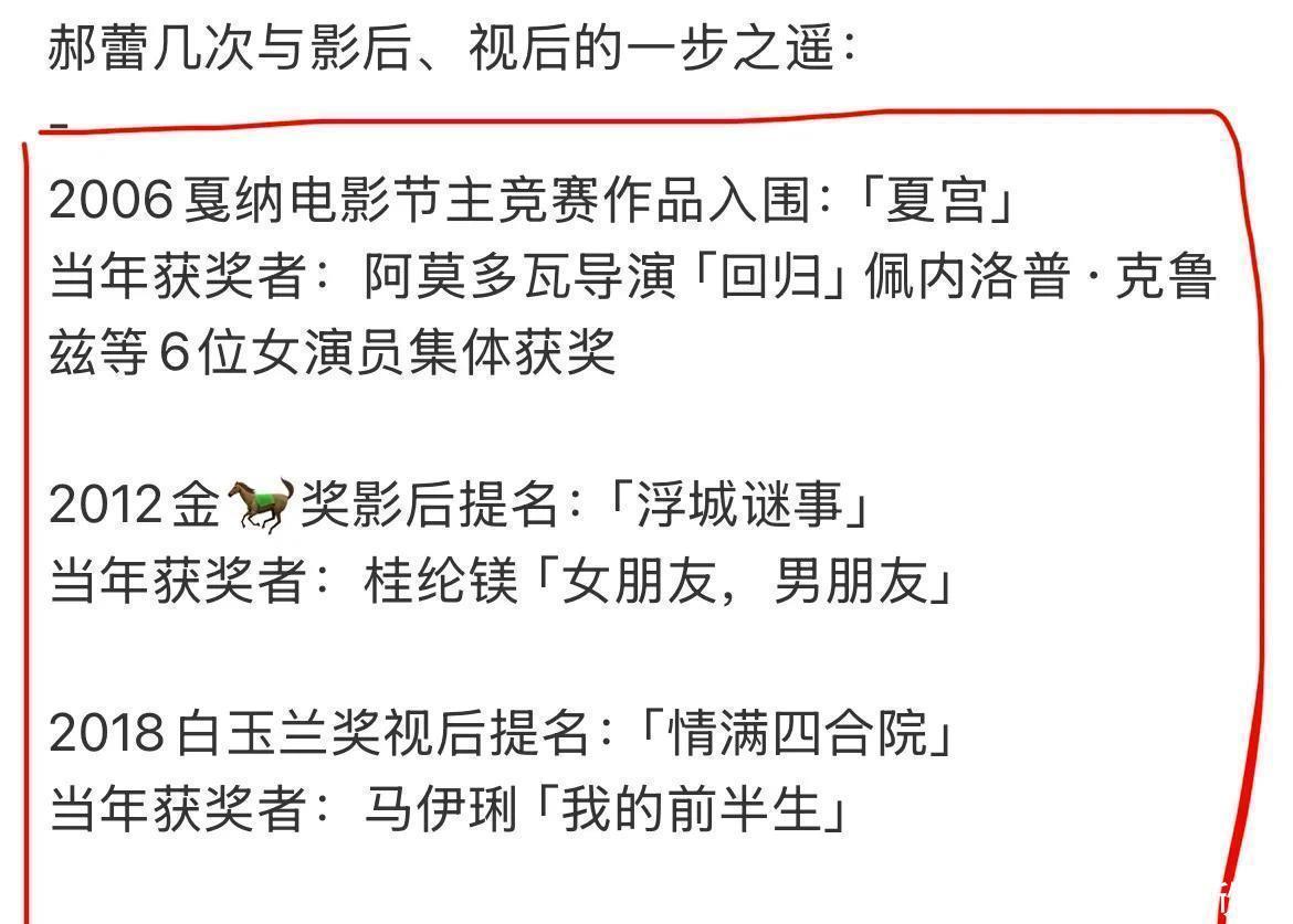 大家都说拿奖需要占尽天时地利人和,但郝蕾总是差那么一丁点儿,好像运气没跟上,几次差点和影后、视后擦肩而过。